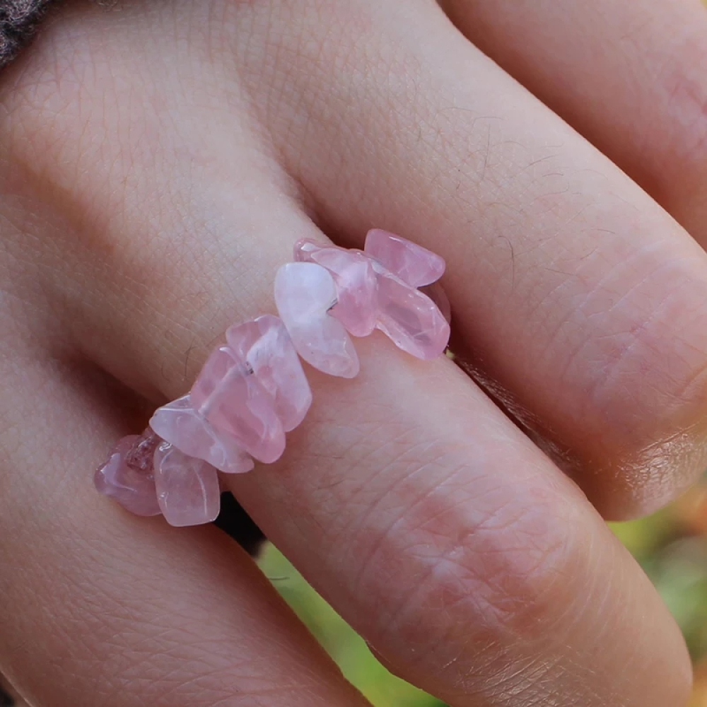 Prachtige ring gemaakt van aardbeienkwarts. De ring is van elastiek en past altijd.
