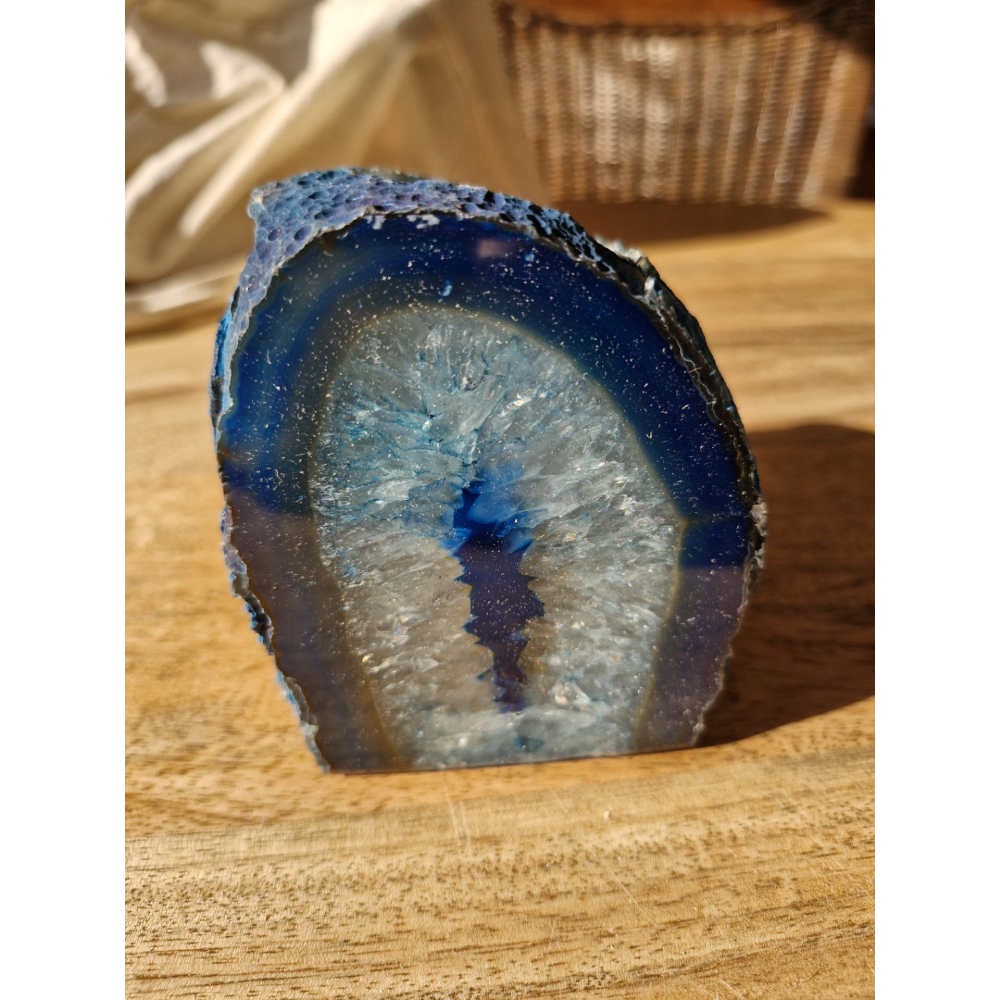 Deze theelichthouder van Agaat in diep blauw (gekleurd) uit Brazilië zorgt voor sfeervol licht dat je door de steen ziet schemeren. Lichtjes van edelsteen zorgen voor een aangename rustgevende sfeer.