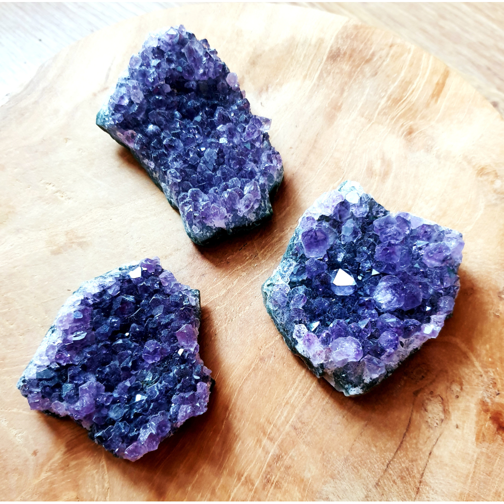Ruwe amethisten uit Uruguay met een gewicht tussen de 40 en 80 gram. Worden per stuk verkocht vanuit voorraad. De kleur van de steen kan iets afwijken van de foto.