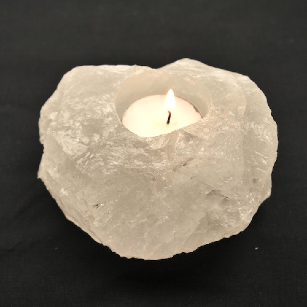 Mooi stuk ruwe bergkristal waxinelichthouder uit Brazilië, inclusief waxinelichtje. Iedere bergkristal waxinelichthouder is uniek in vorm en afmeting.
