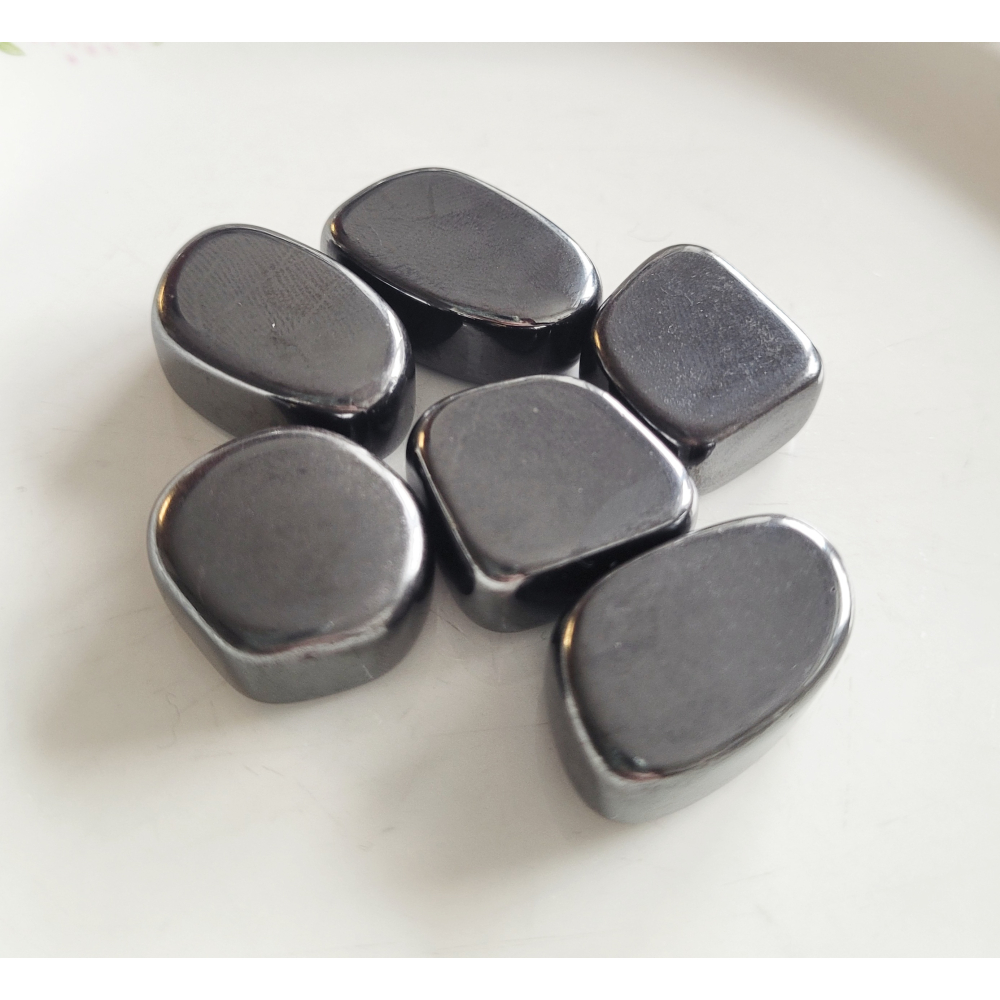 Hematiet trommelstenen van 10 tot 15 gram.