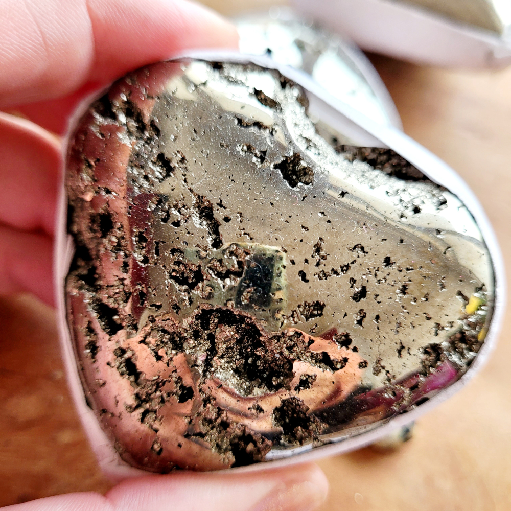 Pyriet bevordert openheid en eerlijkheid naar jezelf toe. Het leert om tevreden te zijn met jezelf en om jezelf te accepteren zoals je bent met al je goede en minder goede eigenschappen. Het is de perfecte steen om bepaalde 'schadelijke' gedragspatronen te doorbreken doordat de steen je inzicht geeft in factoren die hier aan bijdragen of dit in stand houden.