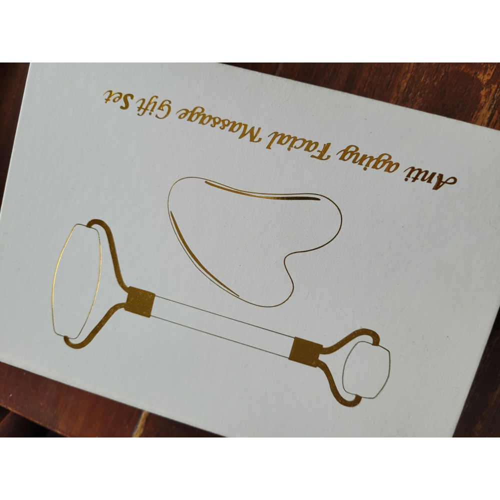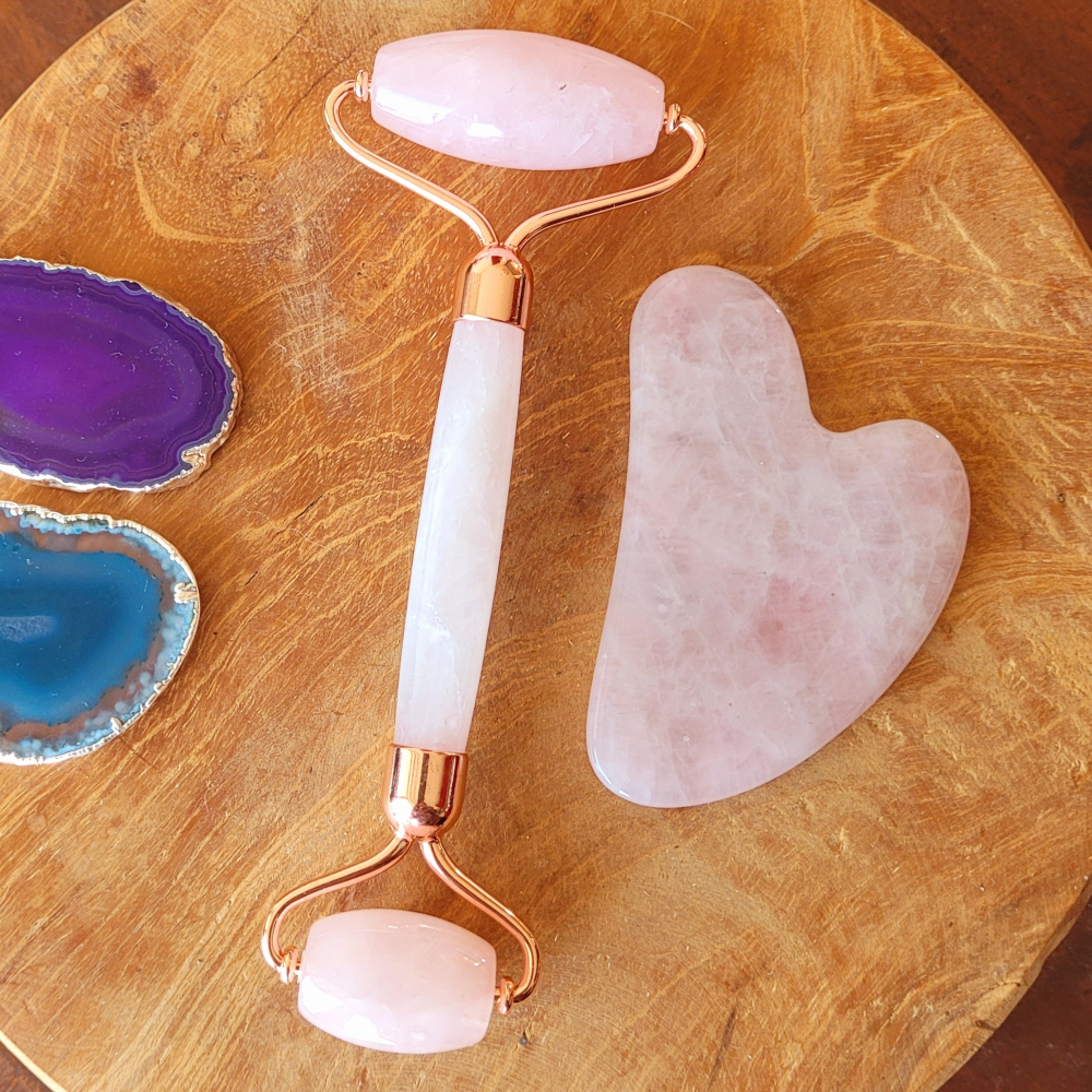 Supermooie set van een gezichtsroller met een guasha steen van rozenkwarts, voor een superzacht prijsje.