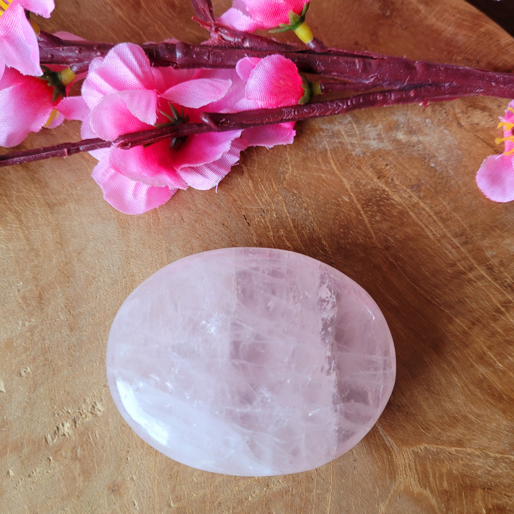Deze prachtige rozenkwarts steen komt uit Madagaskar en is 6×5 cm.